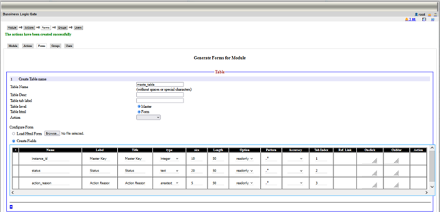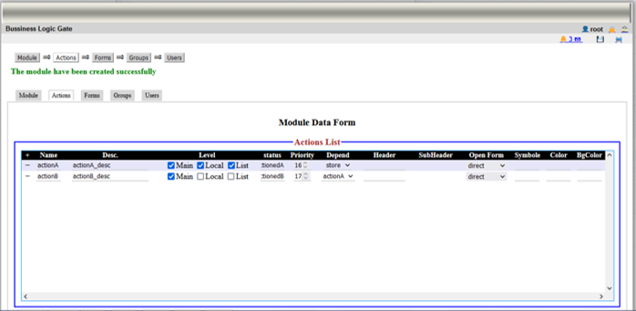 7: The next page requires you to add the actions or tasks that will be used to process the module doucment