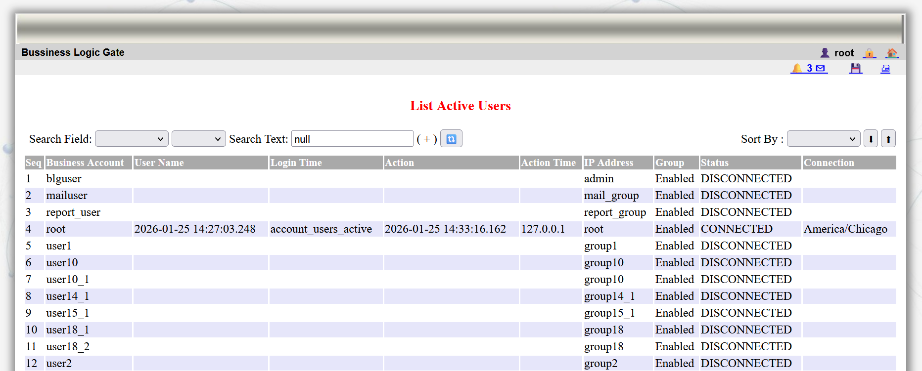 11: The system provide the management with option for monitoring and following active users working on the system