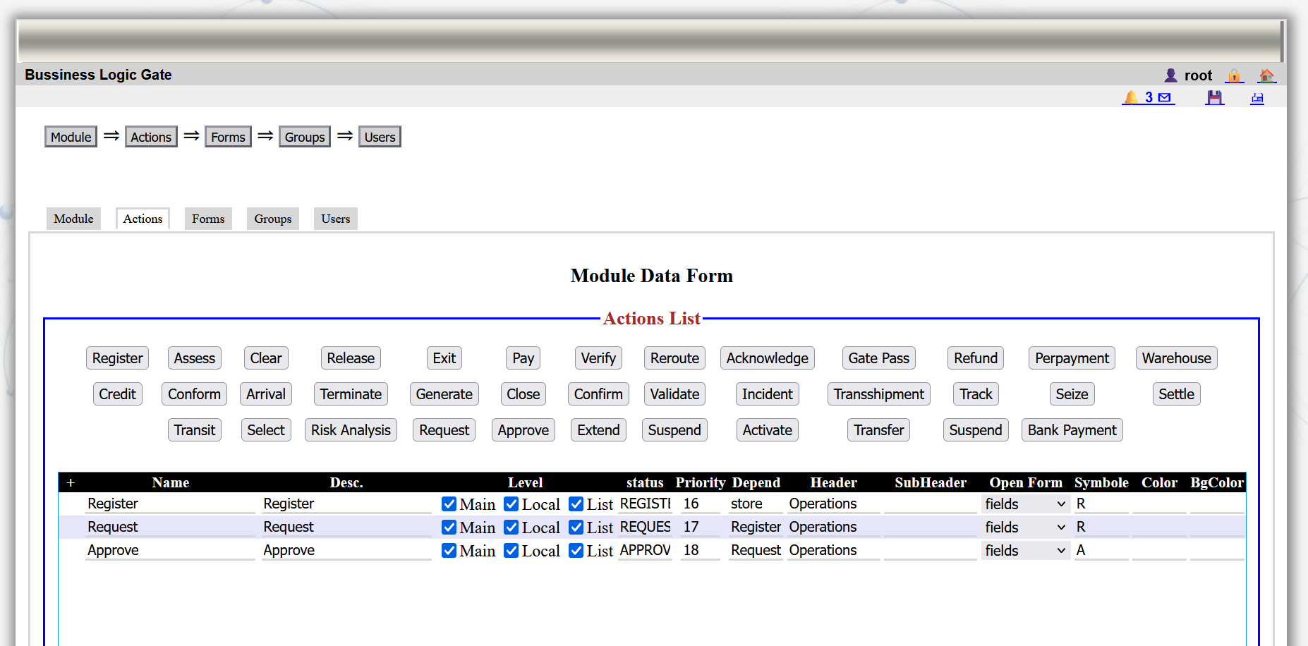 4: Actions and tasks are configured during the process of building the module